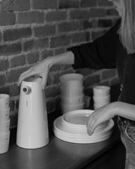 Originaire de Québec, Mireille Gagnon est la créatrice derrière la marque d’objets pour la maison Margot. Elle est d’abord bachelière en design graphique à l’Université Laval, puis diplômée de l’option céramique de la Maison des Métiers d’Art de Québec. Son expérience dans ces deux domaines complémentaires influence grandement sa vision de l’objet et son travail, qui se démarque par son caractère formel, précis et minimaliste. Désireuse de partager sa passion et son savoir à la relève, elle investit également une partie de son temps dans l’enseignement en étant chargée de cours à la Maison des Métiers d’Art de Québec. Son atelier est situé dans le Mile-End, à Montréal.